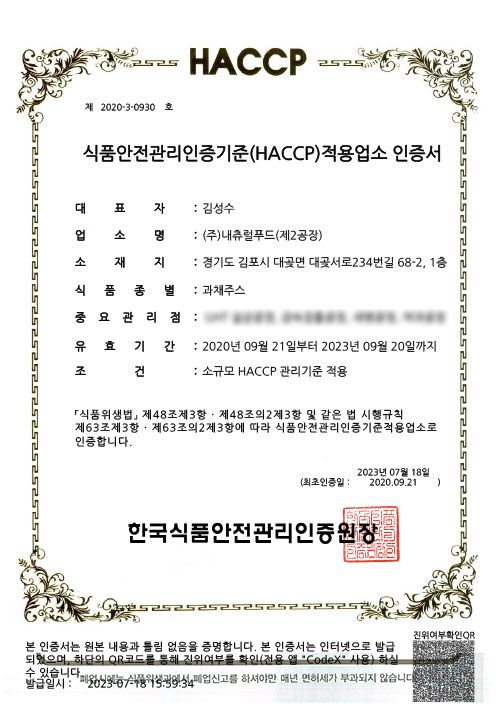 HACCP(Second Factory) Fruit and Vegetable Juice